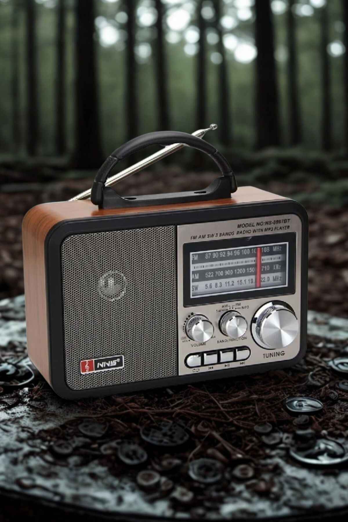 AD Orta Boy Retro, Nostaljik Ahşap Tasarım Bluetooth Hoparlörlü Radyo – FM/AM Destekli, Şarjlı ve Taşınabilir (NS-8897)