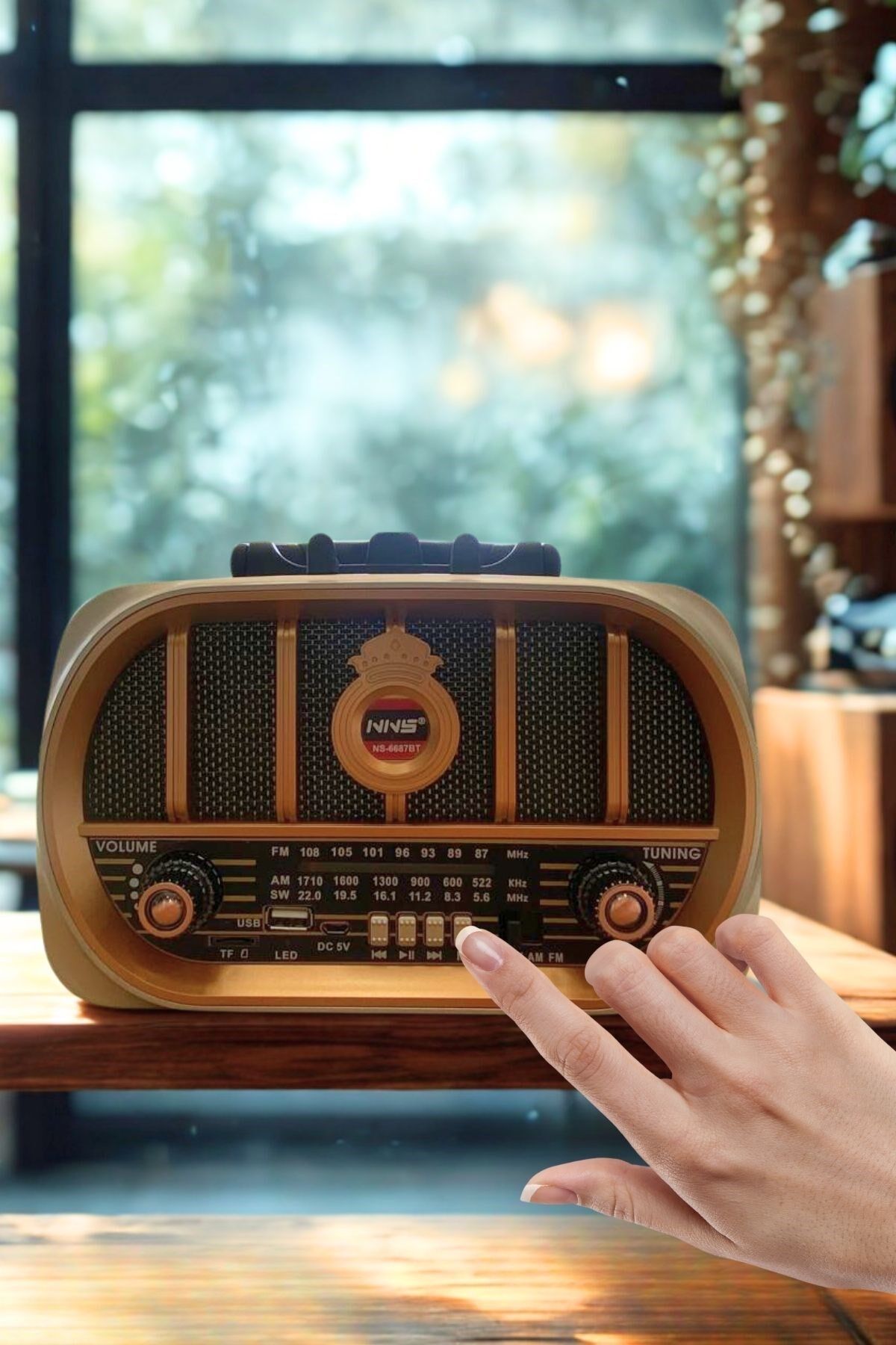 AD Orta Boy Retro, Nostaljik, Ahşap Tasarım Bluetooth Hoparlörlü, Şarjlı, Taşınabilir Oval Ön Yüzlü FM/AM Destekli Radyo NS6687