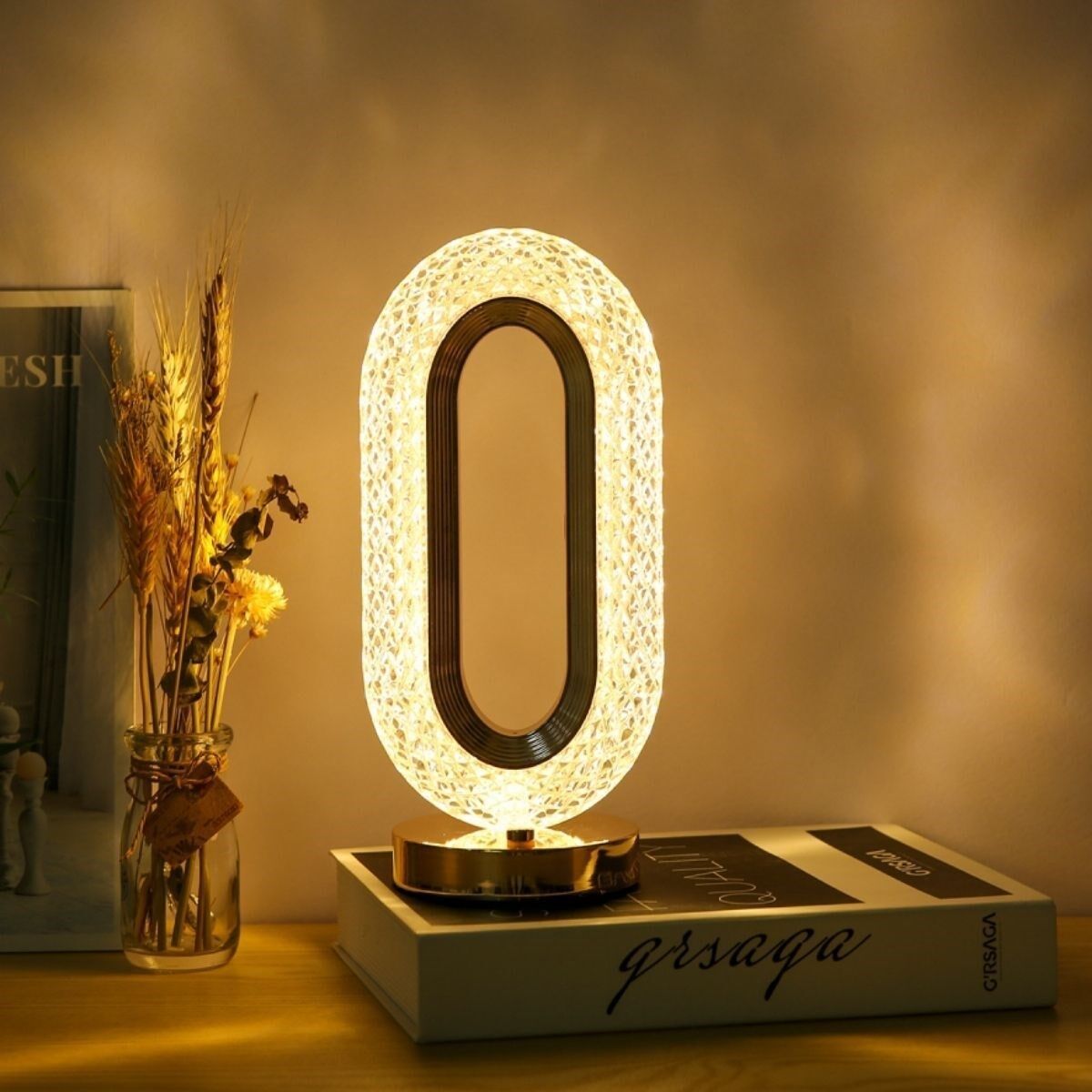 1 Adet AD Oval Model USB Şarjlı Dokunmatik 3 Farklı Işık Modlu Masa Üstü Kristal Akrilik Lamba Led