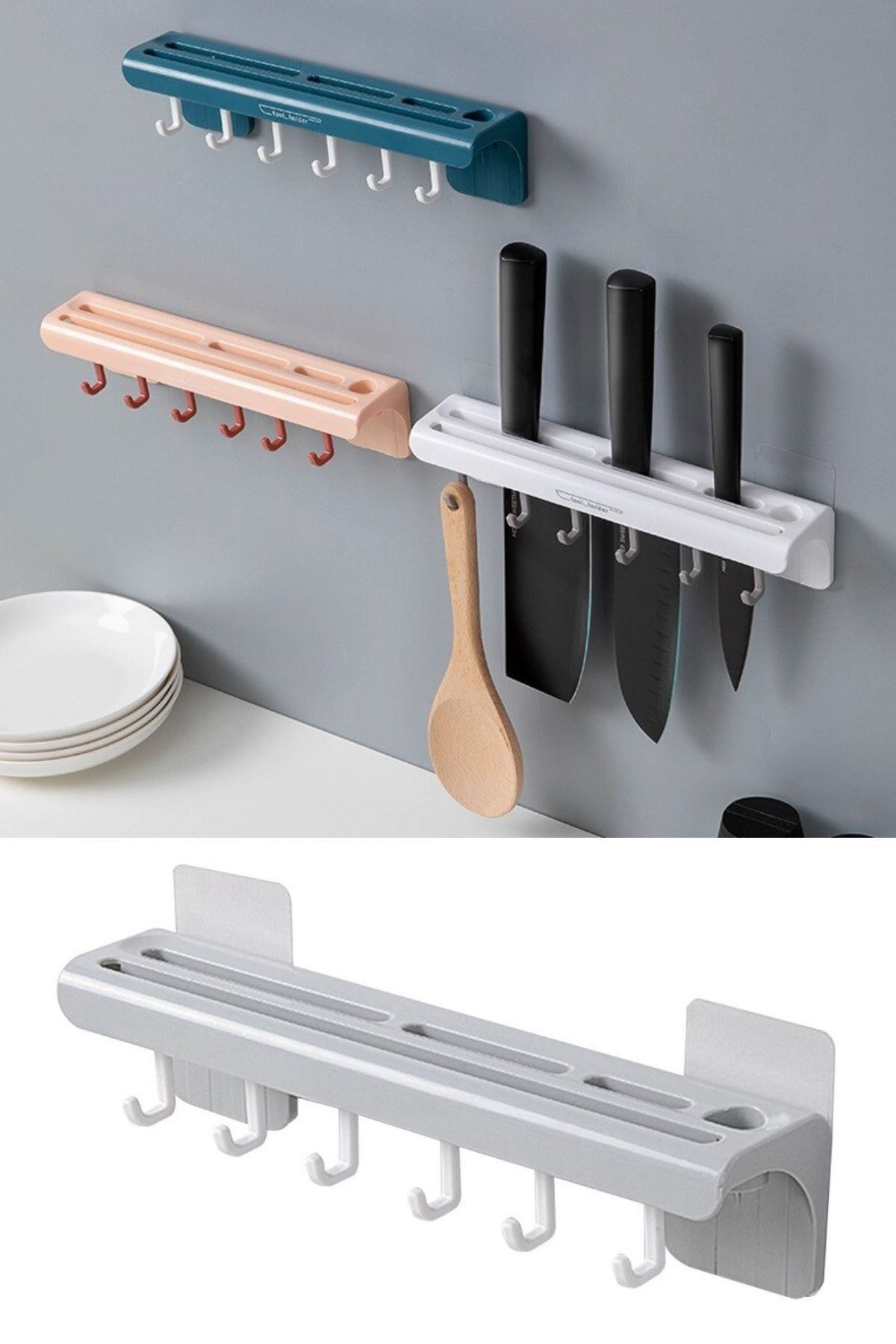 Kullanışlı tasarım: Pratik plastik bıçak askısı, mutfak dolaplarında veya duvarda kullanım için uygun tasarlanmıştır. Ayrıca askı, çekmece veya dolap içinde de kullanılabilir, böylece mutfakta yer sorunu yaşamadan bıçaklarınızı düzenli bir şekilde saklayabilirsiniz.