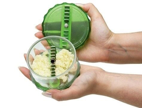 - Doğramak için doğrayıcı kaba sarımsakları yerleştirmeniz ve çevirmeniz yeterli