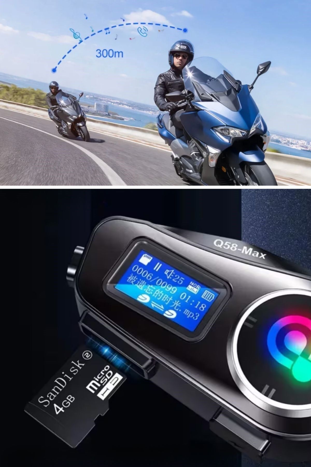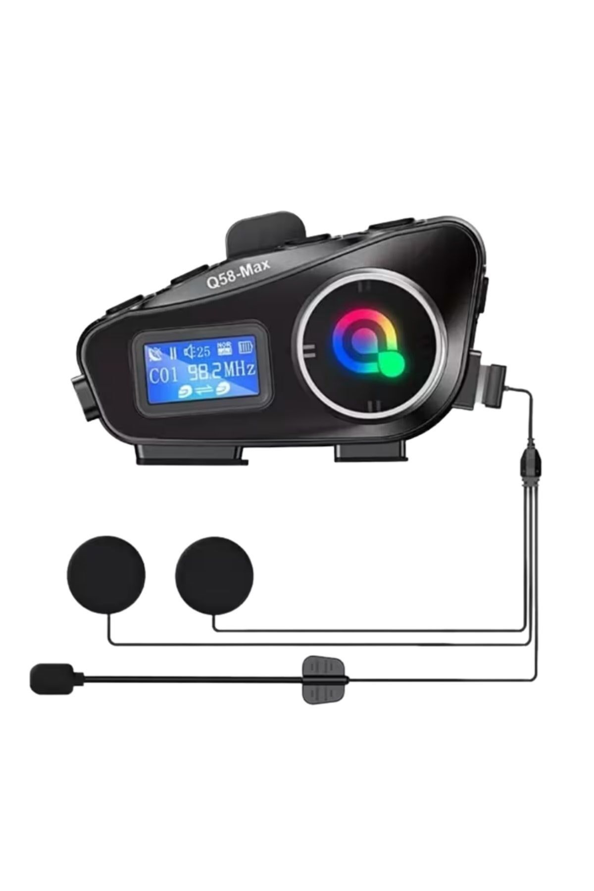 AD Q58 Motosikletler İçin Fener Özellikli SD Kart Bölümlü LCD Ekranlı Kablosuz Bluetooth Kulaklık – Suya Dayanıklı Kask Kulaklığı