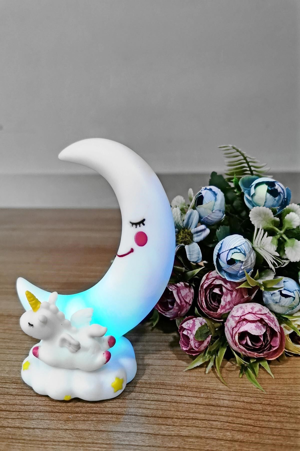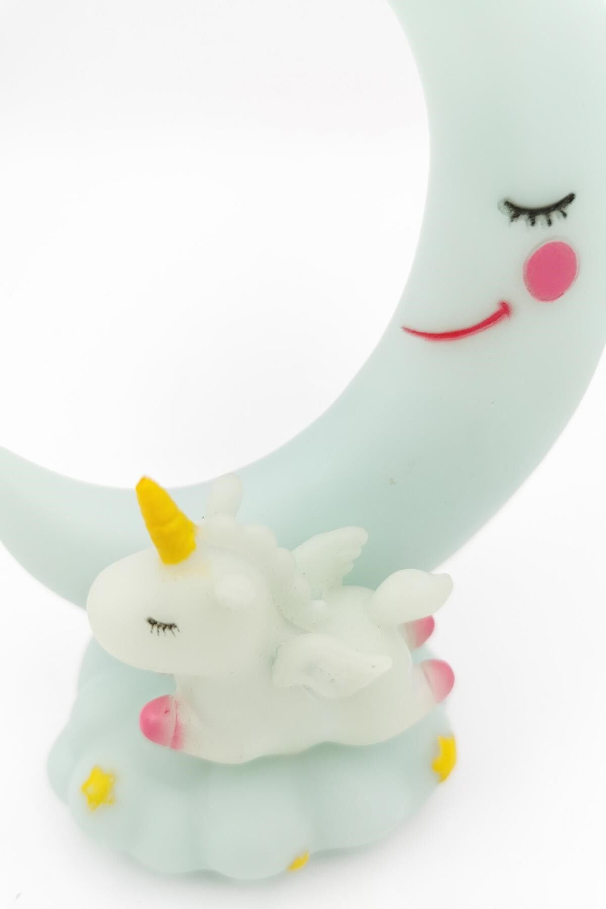 Sevimli Ay Ve Unicorn Dekorlu Renk Değiştiren Gece Lambası Su Yeşili