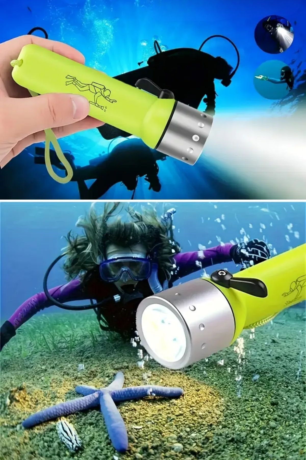 AD Süper Parlak LED Su Altı Dalış Feneri – Taşınabilir, Su Geçirmez ve Darbeye Dayanıklı El Feneri