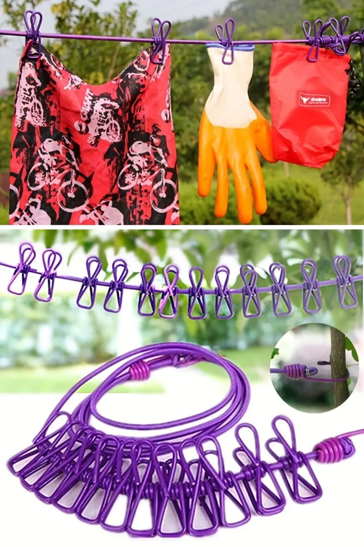 AD Taşınabilir Seyahat Çamaşır İpi 12 Mandallı Klipsli Lastikli Çamaşır Mandalları