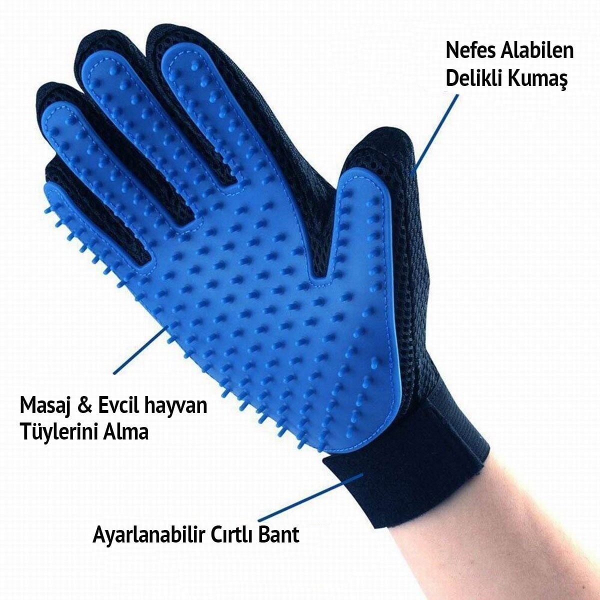 -Kedi tüy temizleyici masaj eldivenin avuç içinde hafif dişli bir yüzeyi vardır ve kopmuş tüyleri de köpeğinizden rahatlıkla almanızı sağlar