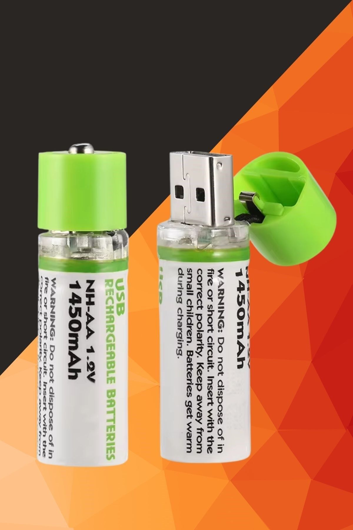 AD USB Şarjlı 1450mAh AA 1.2V Lityum Kalem Pil – 2’li Set, Tekrar Şarj Edilebilir Uzun Ömürlü Dönüştürülebilir Batarya