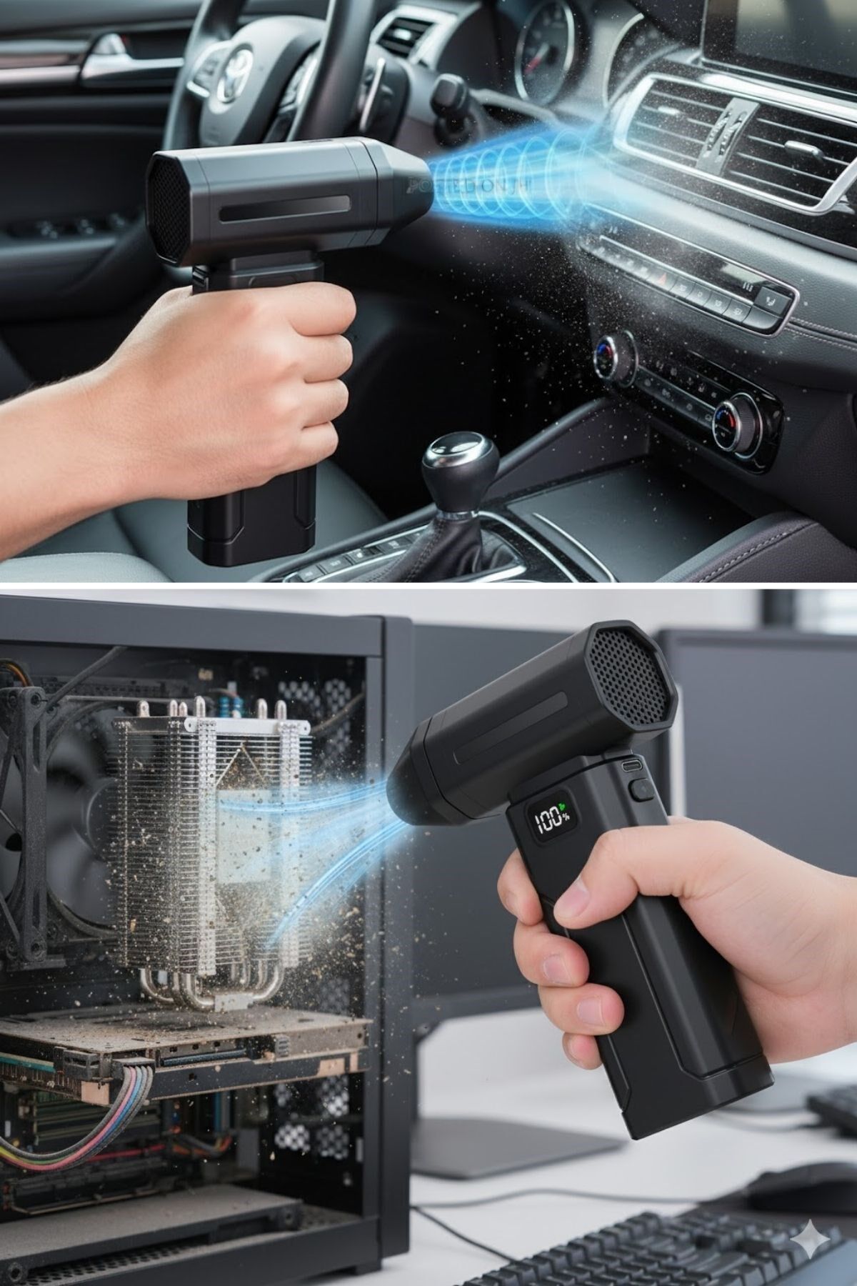 AD USB Şarjlı Güçlü Hava Üflemeli Toz Temizleyici, araç içinden bilgisayar ekipmanlarına kadar ulaşılması zor alanlardaki toz, kırıntı ve ince kirleri kolayca temizlemek için tasarlanmış pratik ve güçlü bir temizlik cihazıdır.