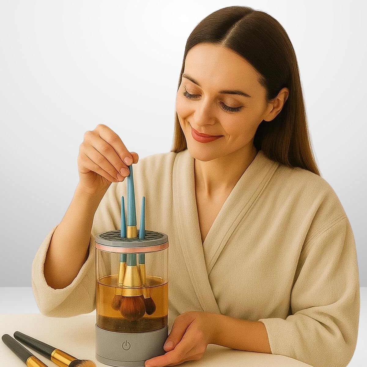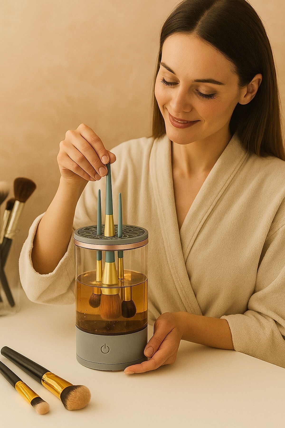Makyaj fırçalarınız artık çok daha temiz ve hijyenik! AD USB Şarjlı Makyaj Fırçası Temizleyici Aparat ile fırçalarınızı dakikalar içinde yıkayın ve kurutun. Bu çok yönlü cihaz, farklı boyutlardaki fırçaları kolayca temizlemenizi sağlarken, güçlü motoru sayesinde etkili ve nazik bir temizlik sunar.