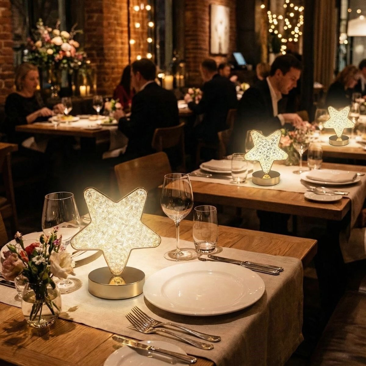 BUFFER® Yıldız Model Kristal LED Masa Lambası – Dokunmatik, 3 Renk Işık Modlu, Şarjlı Mini Dekoratif Gece Lambası