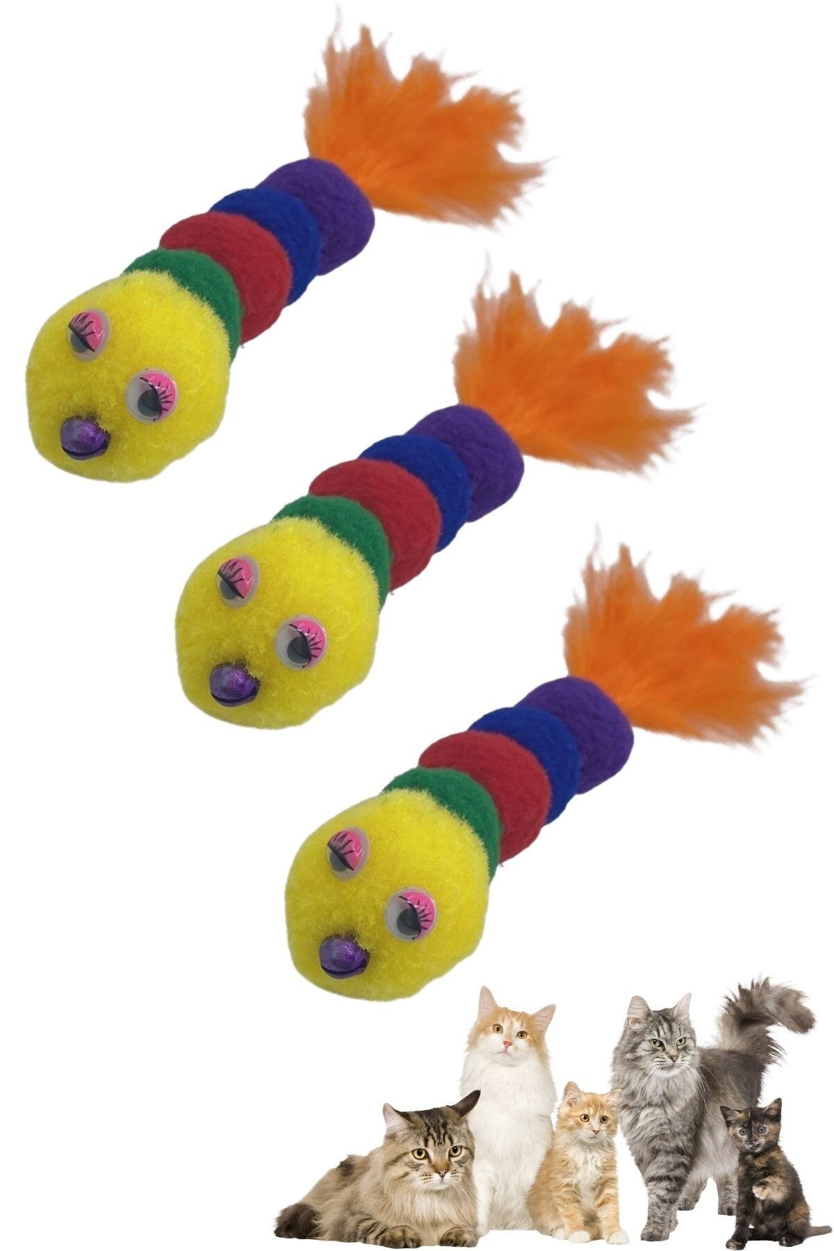 AD Yumuşacık İpli Tırtıl Şeklinde Rengarenk Sevimli Evcil Hayvan Oyuncağı