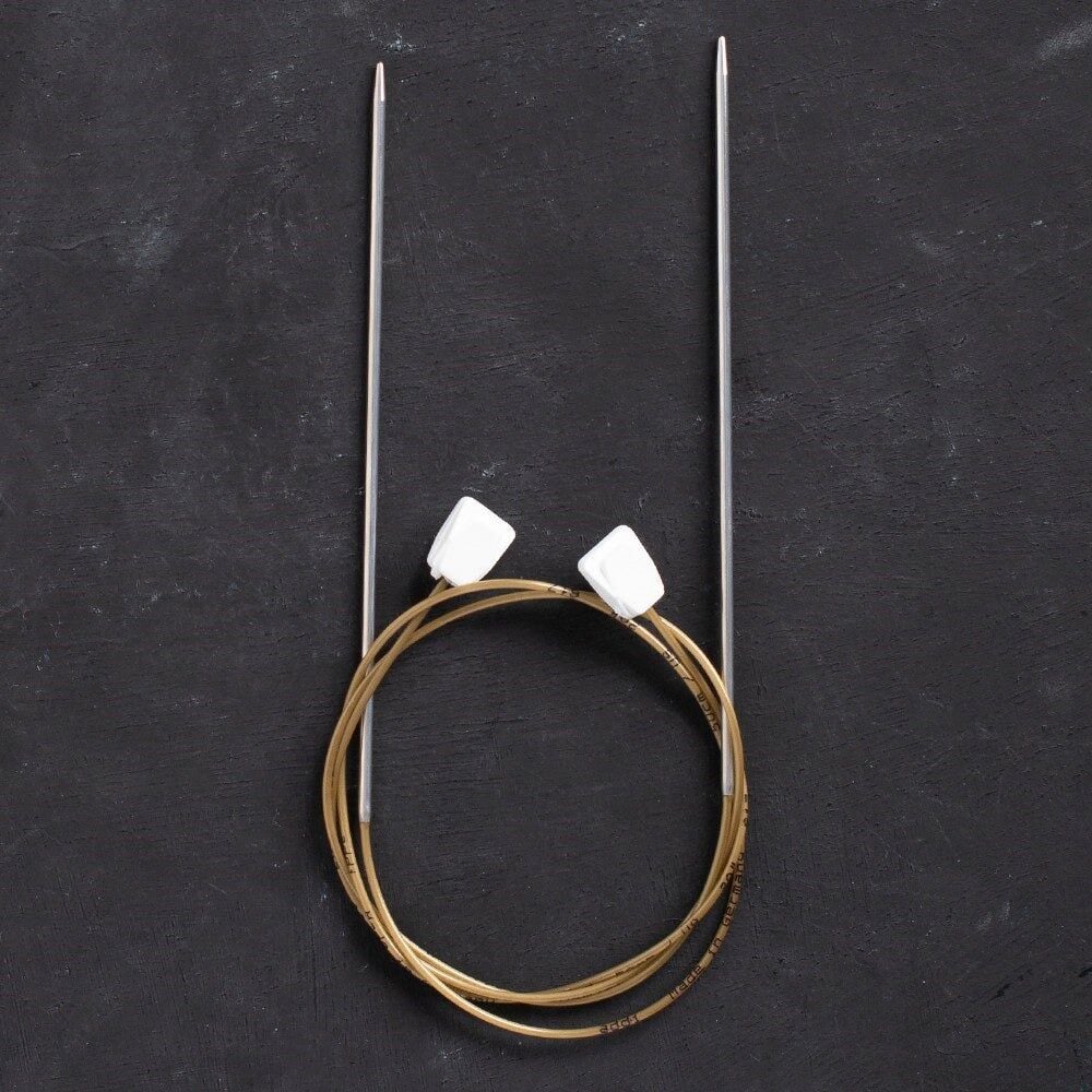Klasik düz örgü şişi yerine esnek kordonlu düz örgü şişi kullanarak büyük projelerde daha kolay örebilirsiniz. Ayrıca misinalı şişlerdeki sürekli kendi kendine dönmesi gibi problemlerden de kurtulmuş olursunuz.