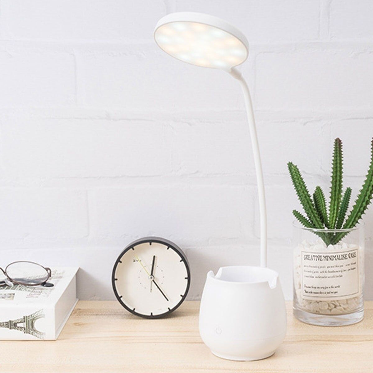 ADKalemlikli Telefon Tutacaklı Şarjlı Dokunmatik 3 Mod Esnek Başlıklı Dimmerli LED Masa Lambası