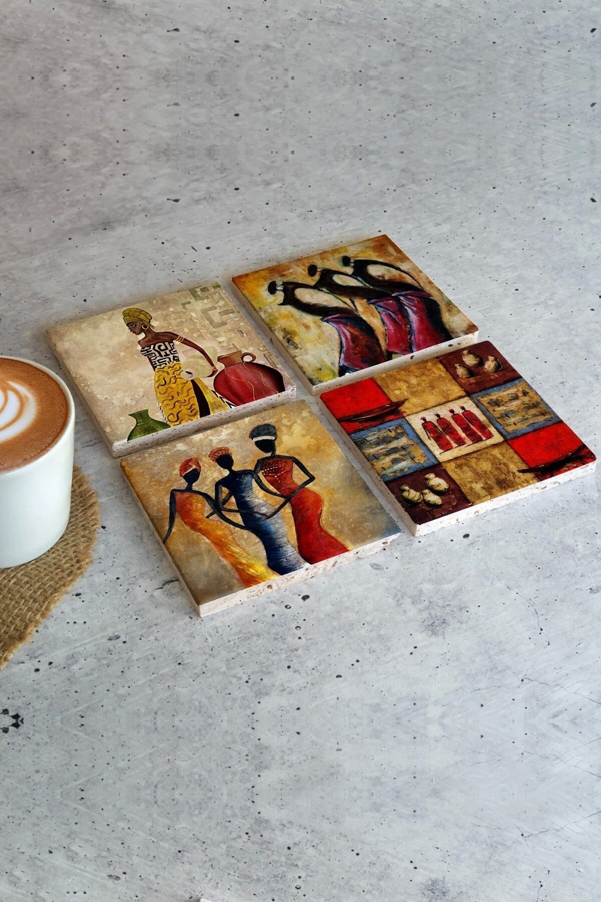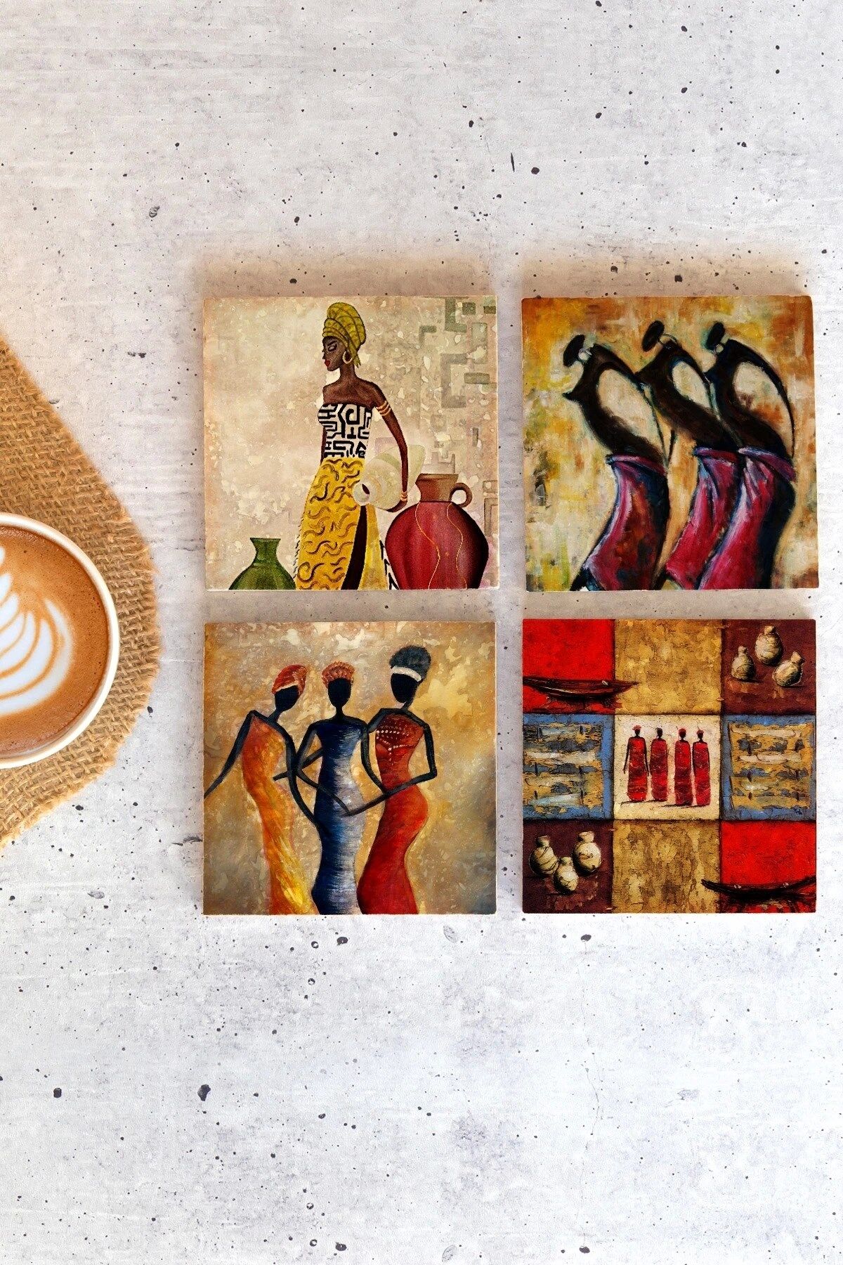 Afrikalı Kadın 4'lü Taş Bardak Altlığı y_ZHT007173