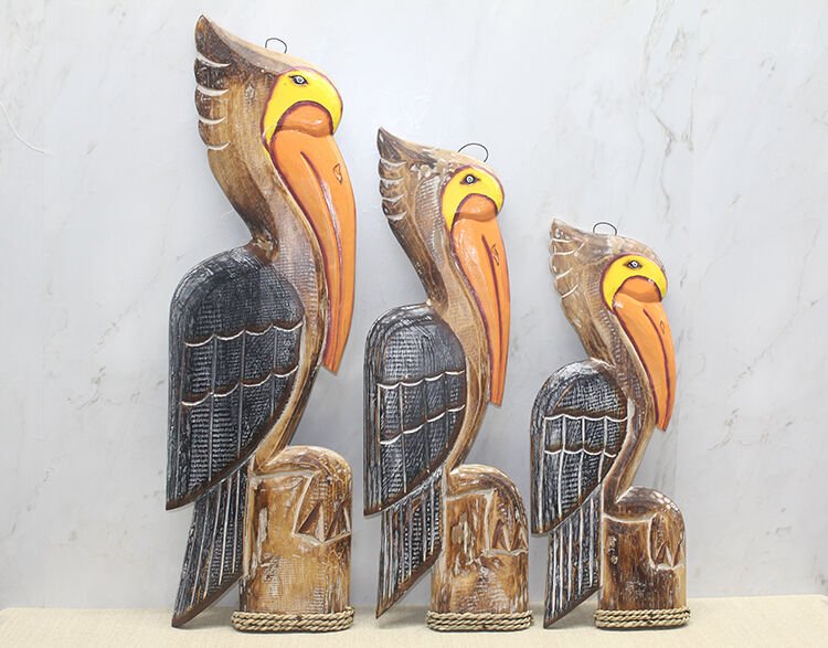 Ahşap 3'lü Pelikan Seti, 40-50-60 cm boyutlarında üçlü dekoratif setten oluşmaktadır. Her bir pelikan, özenle işlenmiş ahşap malzeme ile üretilmiş olup, doğal dokusu ve zarif tasarımıyla ev veya ofis dekorasyonunuza şıklık katacak bir üründür. Setin her bir parçası, doğal renkleriyle birlikte pelikan figürlerini vurgular ve dekoratif amaçla mükemmel bir seçenek sunar.