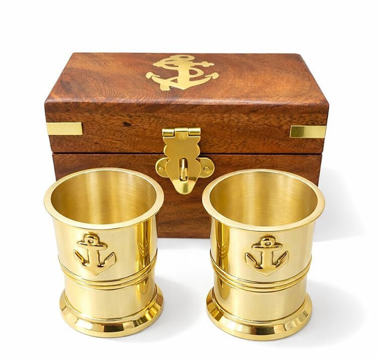 1 adet Ahşap Kutulu 2'li Pirinç Shot Bardak Seti