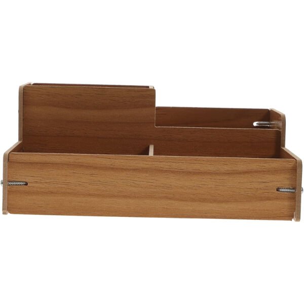 AHŞAP MASA ÜSTÜ DÜZENLEYİCİ KUTUÜrün ÖzellikleriAhşap masa üstü düzenleyici kutu, çalışma alanınızı düzenli ve şık hale getirmek için mükemmel bir çözümdür. Doğal ahşap malzemeden üretilmiş olup sağlam ve dayanıklı bir yapıya sahiptir. Kalem, makas, fırça, cetvel ve diğer ofis ya da makyaj malzemelerinizi düzenli bir şekilde saklamanıza yardımcı olur. Bölmeli yapısı sayesinde farklı eşyalarınızı kategorilere ayırarak kullanabilirsiniz. Şık ve fonksiyonel tasarımı sayesinde ofis masalarında, çalışma odalarında, mutfakta veya makyaj malzemeleri düzenleyicisi olarak rahatlıkla kullanılabilir. Ürün demonte olarak gönderilmektedir ve vidalar ile kolayca monte edilebilir. Hafif ve taşınabilir yapısı sayesinde istenilen her yere kolayca yerleştirilebilir.Paket İçeriği1 adet ahşap masa üstü düzenleyici kutu