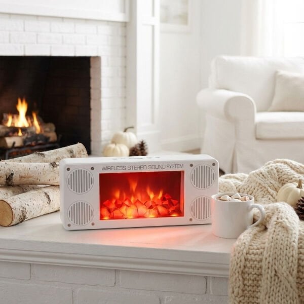 1 Adet Alev Şömine Efektli Bluetooth Hoparlör Beyaz