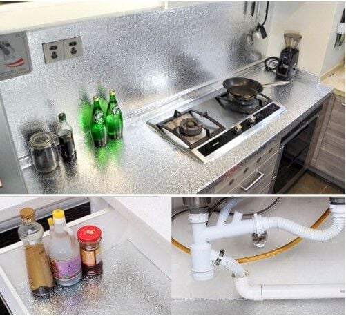 Alüminyum Folyo Yapışkanlı Mutfak Koruyucu FolyoÜrün Açıklaması:Bu alüminyum folyo yapışkanlı mutfak koruyucu kağıt, mutfak tezgahlarınızı, dolaplarınızı ve diğer yüzeylerinizi yağ, su ve kirden korumak için idealdir. Dayanıklı ve yüksek kaliteli malzemesi sayesinde uzun süre kullanılabilir. Kolayca yapışır ve çıkarılır, bu da temizlik ve düzen sağlamak için idealdir. Hem estetik bir görünüm sunar hem de mutfak yüzeylerinizi korur. Kullanımı kolaydır ve farklı yüzeylerde pratik bir koruma sağlar.Ürün Ölçüleri: Genişlik: 60 cm Uzunluk: 2 metrePaket içeriği : 1 Adet Alüminyum Folyo Yapışkanlı Mutfak Koruyucu Folyo 2 Metre