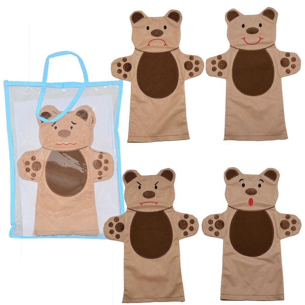 Çocuklara mimikleri öğreten eğlenceli el kuklası seti.