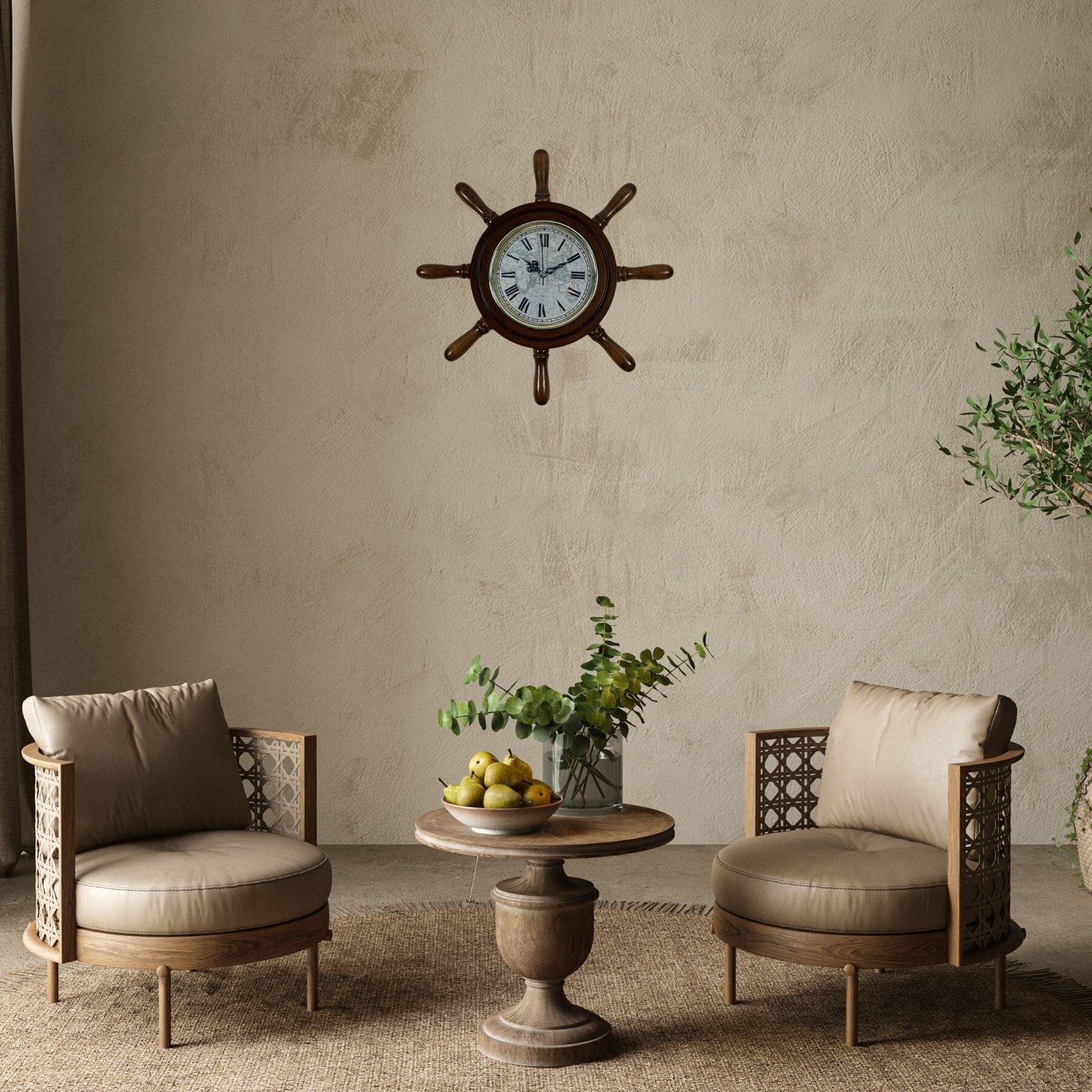 Eskitme Kavelalı Dümen Duvar Saati – 37 cm Marin Temalı Dekoratif Saat
