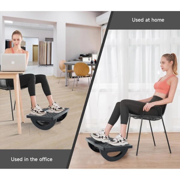 Ayak destek ve masaj aleti, masa başında çalışanlar için ergonomik rahatlık sunarken ayak sağlığını destekleyen özel bir tasarıma sahiptir. 34 cm x 25 cm ölçülerindeki bu ürün, 13 cm yüksekliğe sahiptir ve alt kısmında yer alan bombeli denge yapısı sayesinde ayak hareketlerini doğal şekilde destekler. Yüzeyindeki çıkıntılı masaj dokusu ve ortasında bulunan 3 adet masaj rulosu ile ayak tabanına baskı uygulayarak kan dolaşımını artırır. Kaymaz mat yüzeyi sayesinde güvenli bir kullanım sunar. 180 derece eğim kabiliyetiyle ayakların konumunu rahatça ayarlayabilir. Hem evde hem ofiste kullanılmak üzere ideal ve taşınabilir bir çözümdür.