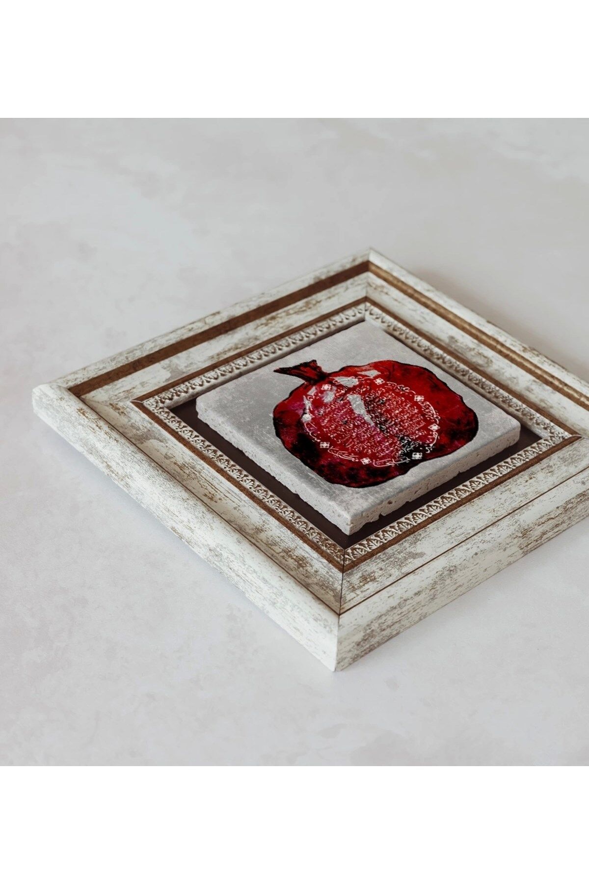 Ürün hakkında: Ölçüleri: 20 cm x 20 cm'dir. ; Kalınlık :2,5 cm'dir. ; Ürünün arka tarafında askı aparatı bulunmaktadır. ; Kullanılan çerçeveler yüksek kaliteli, eskitme görünümlü kompozit malzemeden üretilmiştir. ; Taşların yüzeyindeki baskı teknolojisi özel olup sağlığa hiçbir zararı yoktur. ; Kullanılan malzeme dağdan çıkan gerçek taş oldugu için yüzeyinde belli oranda gözenek bulunması ve renginin krem renginin tonlarını barındırması normaldir kimyasal malzeme teması Yüzey deformasyona maruz kalabilir. ; Nemli bezle silinerek temizlenebilir. ; Isıya, suya ve neme dayanıklıdır. ; Kutu içeriği: Orijinal kutu içerisinde 1 adet çerçeveli taş duvar dekoru. ; 1 adet çerçeveli duvar dekoru ağırlığı: 250 gr çerçeve askısı ile duvara montajı yapılabilir.;