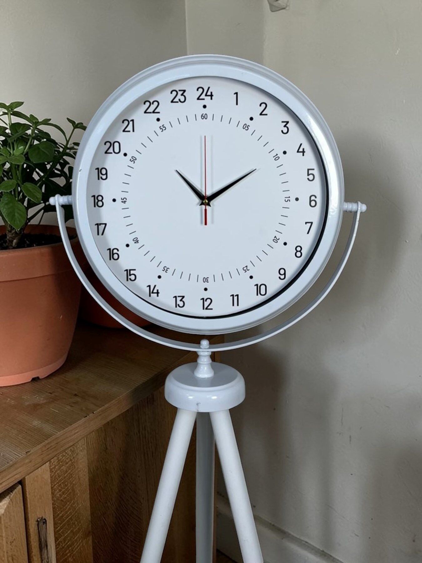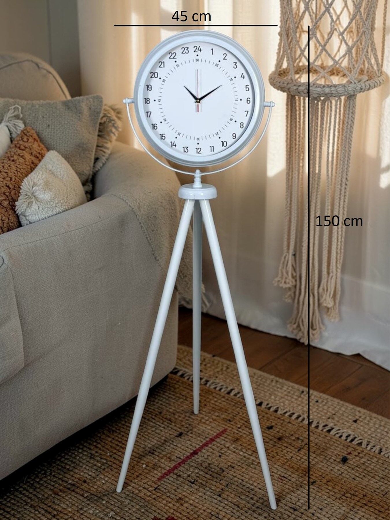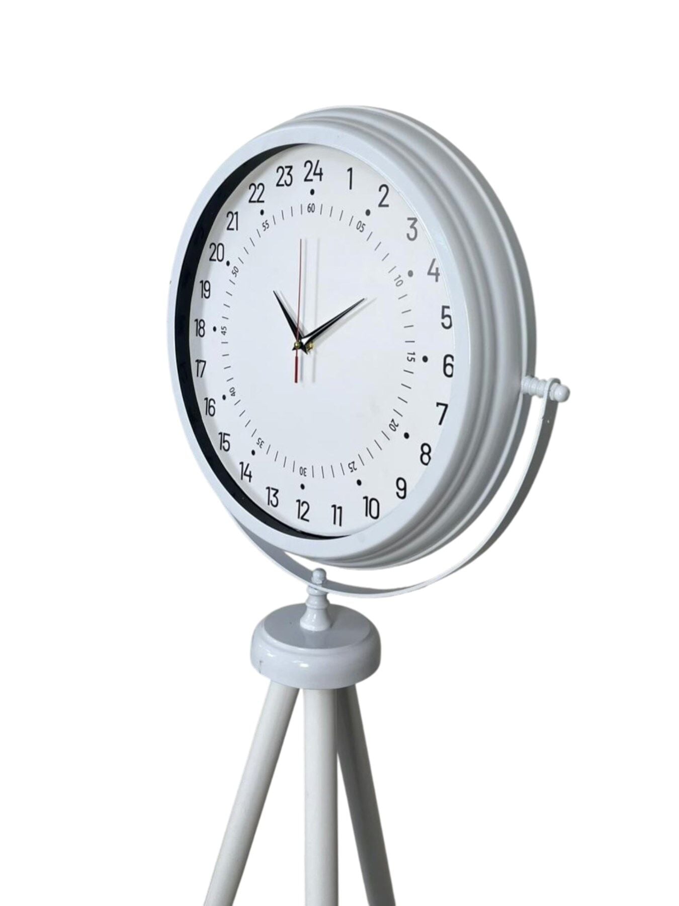 Zamanı farklı bir perspektiften sunan bu özel tasarım 24 saat göstergeli beyaz ayaklı saat, klasik saatlerden tamamen ayrılan yapısıyla dikkat çeker. Standart saatlerin aksine, bu modelde akrep 12 saat değil 24 saatlik zaman dilimini tek turda tamamlar. Bu sayede günün akışını daha net ve bütünsel bir şekilde takip etmenizi sağlar.