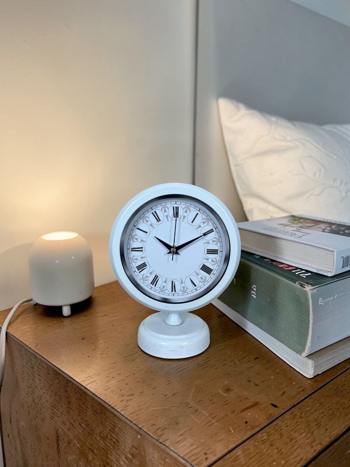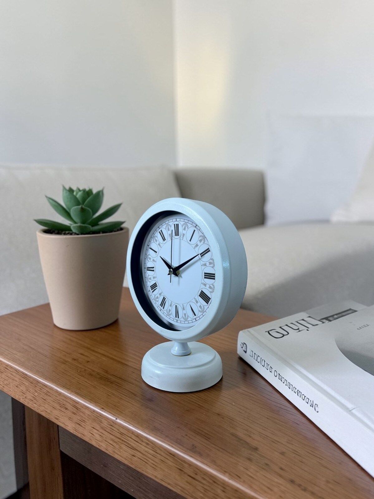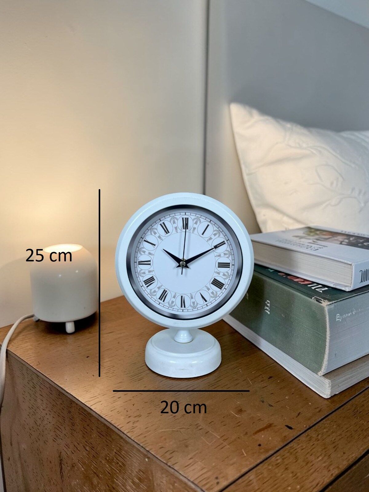 Zarif detayları ve sade tasarımıyla öne çıkan bu beyaz masa saati, Roma rakamlı klasik görünümü modern dokunuşlarla birleştirir. İnce desenli kadranı ve krom çerçeve detayı sayesinde bulunduğu ortama şıklık ve estetik bir hava katar. Minimal ve ferah tasarımı ile hem dekoratif hem de işlevsel bir kullanım sunar. Ofis, salon, yatak odası ve çalışma alanlarında zarif bir tamamlayıcıdır. Sessiz akan saniye mekanizması sayesinde tik tak sesi oluşturmaz, huzurlu bir kullanım sağlar. Gerçek cam yüzeyi ile hem dayanıklılık hem de net ve kaliteli bir görünüm sunar.