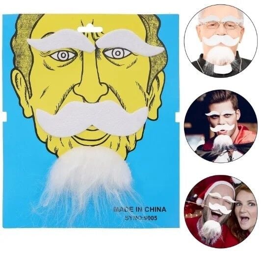 Beyaz Renk Kendinden Yapışkanlı Takma Sakal Bıyık ve Kaş Seti
