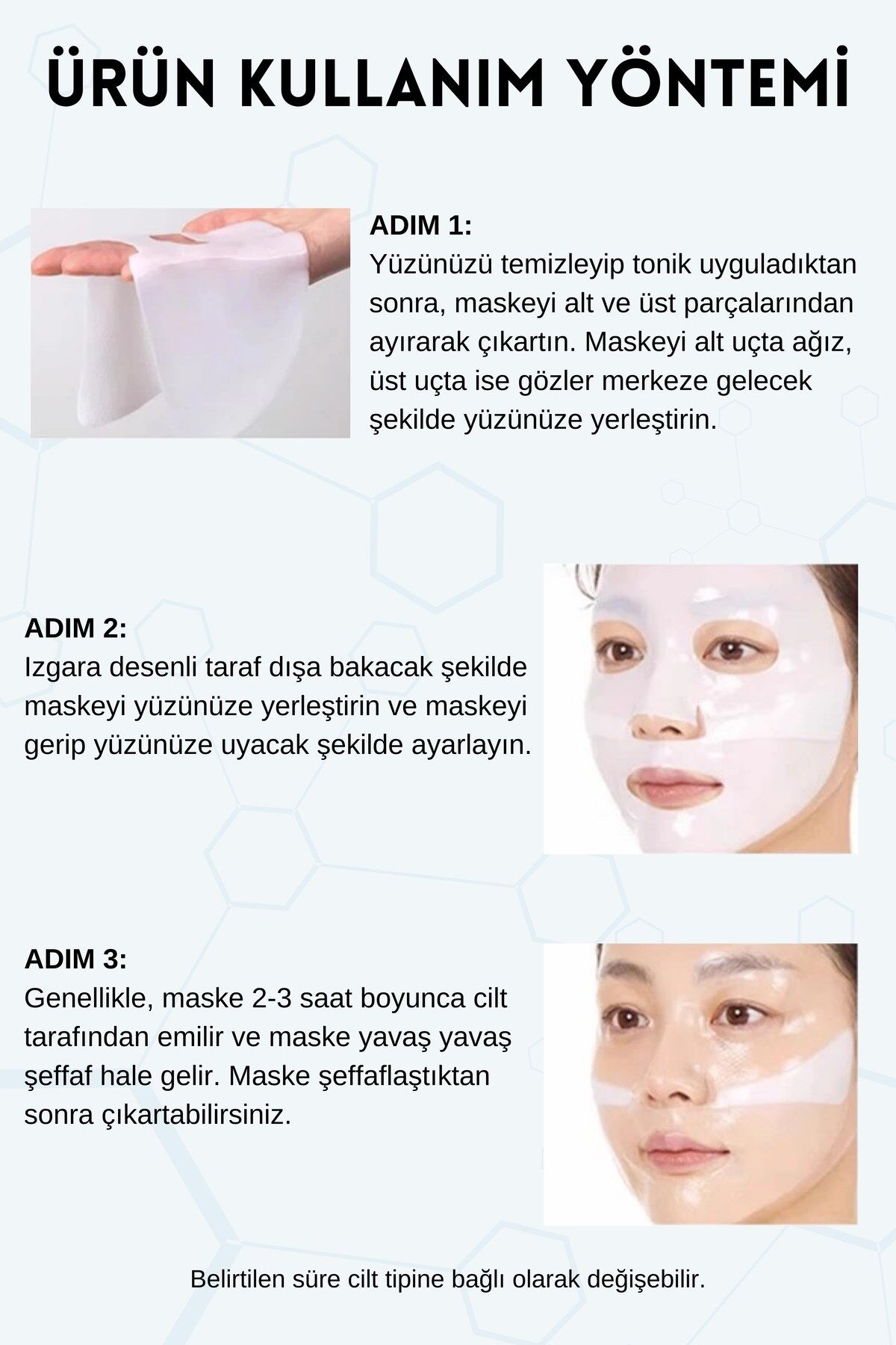Maskeyi çıkardıktan sonra, kalan serumu cildinize nazikçe masaj yaparak yedirin.