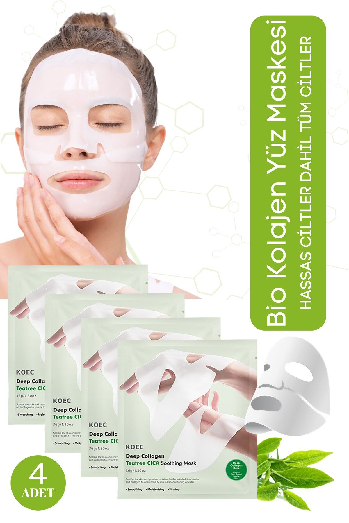 Bio Kolajen Şeffaf Kore Maskesi - Teatree Cica İçerikli Cilt Yatıştırıcı ve Akne Karşıtı 4 Adet