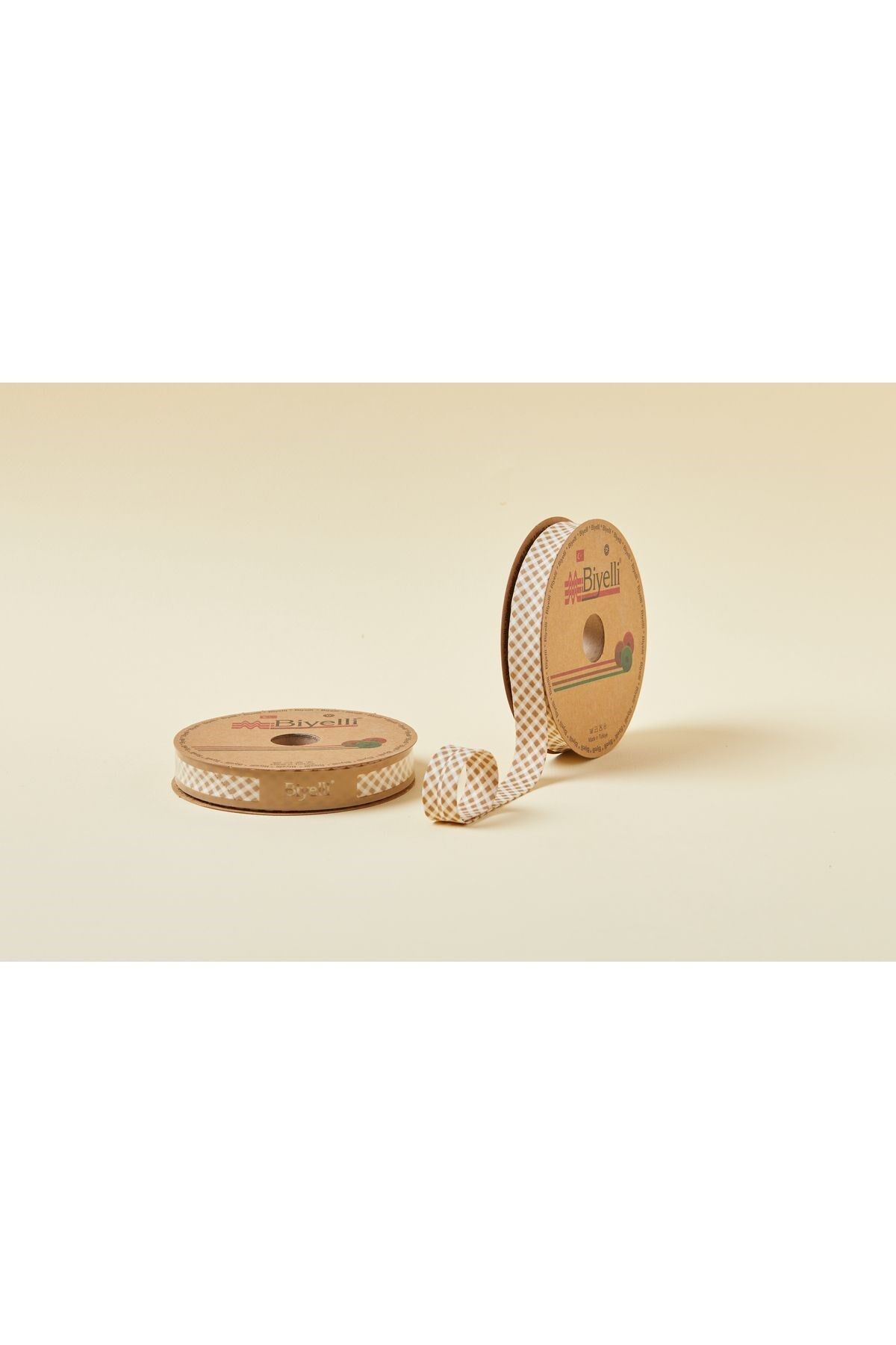 Biye Ekoseli Katlı E09 Kahverengi 2 cm 25 Metre %65 Koton %35 Polyester