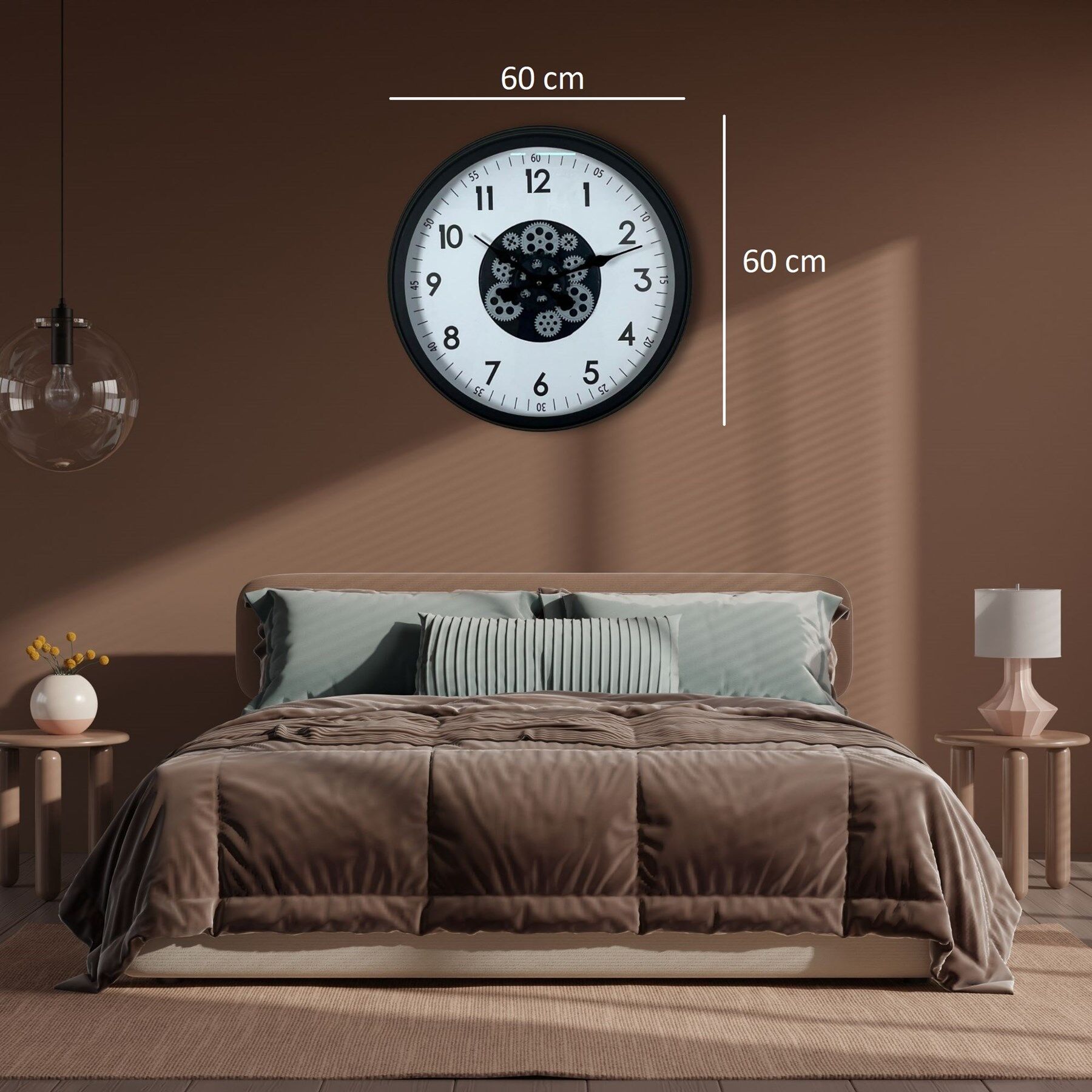 60 cm geniş çapı sayesinde geniş duvarlarda güçlü bir görsel etki oluşturur. Salon, ofis, çalışma alanı, genç odası ve modern dekorasyonlu mekanlar için idealdir.