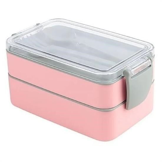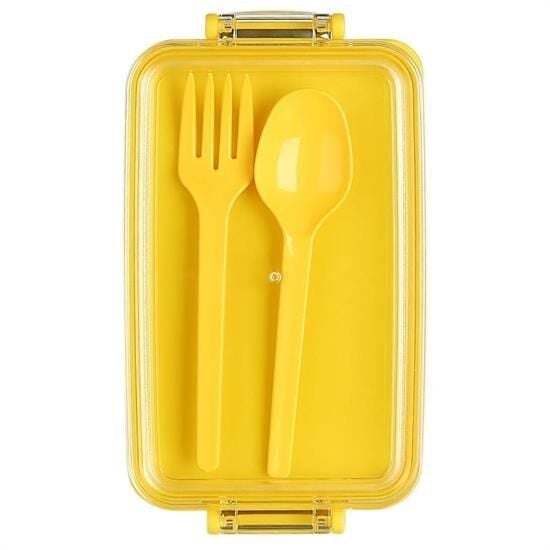 BUFFER® 2 Bölmeli Çok Amaçlı 900 ml Kapasiteli Çatal Kaşıklı Dayanıklı Beslenme Kabı Yiyecek Kutusu