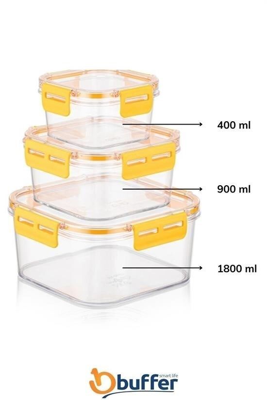 Paket İçeriği: 1x BUFFER® 3'lü Pratik Silikon Contalı Saklama Kapları