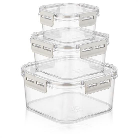 3'lü İstiflenebilir özelliğiyle mutfağınızda yer kaplamaz, rahat ve kompakt saklama için üst üste istiflenebilir ve buzdolabında da iyi bir organizer görevi görür