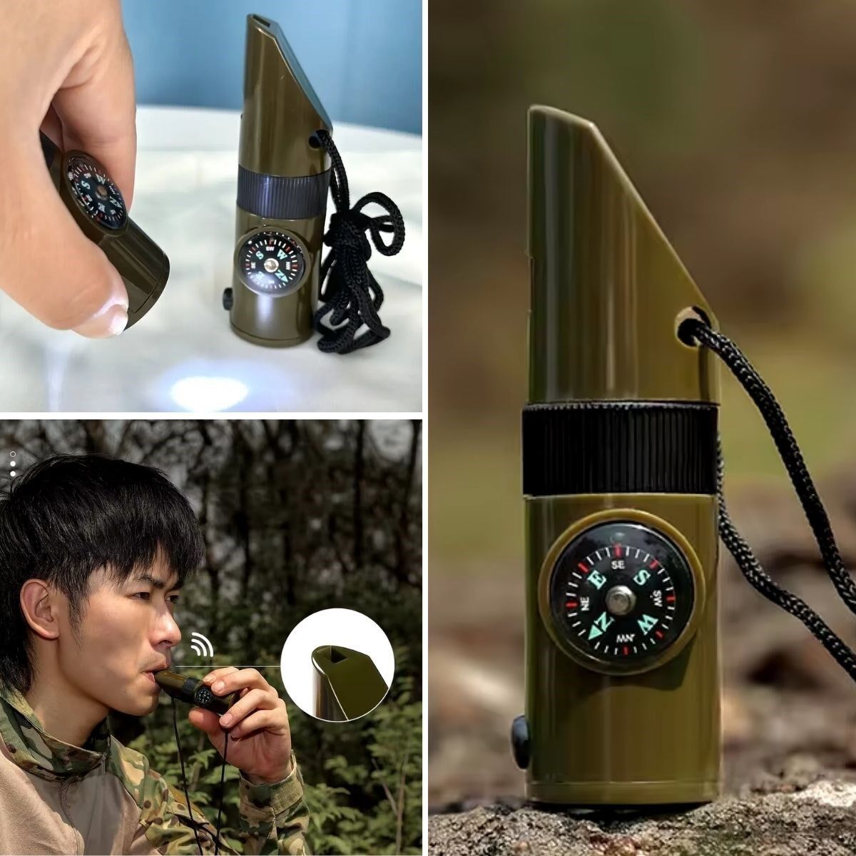 BUFFER® 7si 1arada Acil Durum Düdüğü,El Feneri, Termometre,Pusula,Büyüteç,Depolama Bölmeli Kampçı Düdüğü