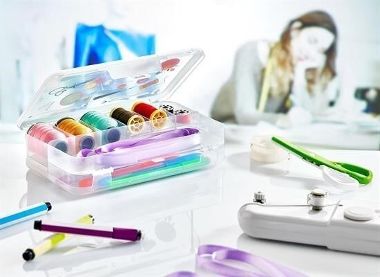 Plastik saklama kutusu içerisine makas, İğne takımları, dikiş ipleri gibi ürünleri rahatlıkla sığdırabilirsiniz