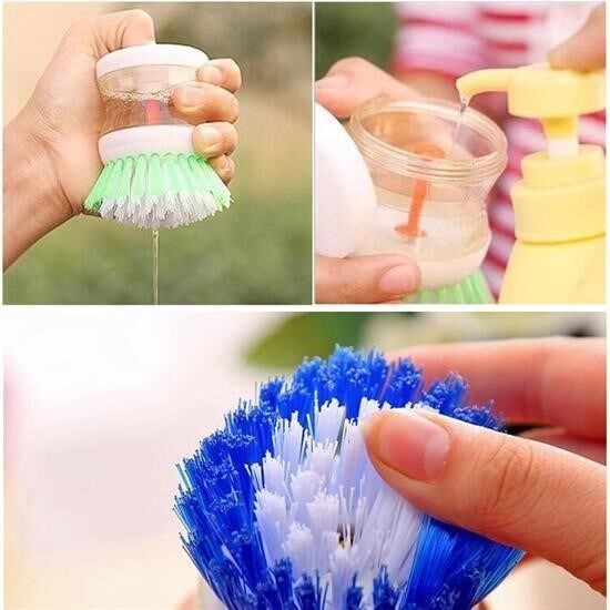 Pratik bulaşık yıkama fırçası bulaşık süngerini kullanmak için sıvı deterjan haznesine bulaşık deterjanı koyun üstteki düğmeye her bastığınızda bir miktar deterejan fırçanın kıllarının dibinden fırçaya akar!