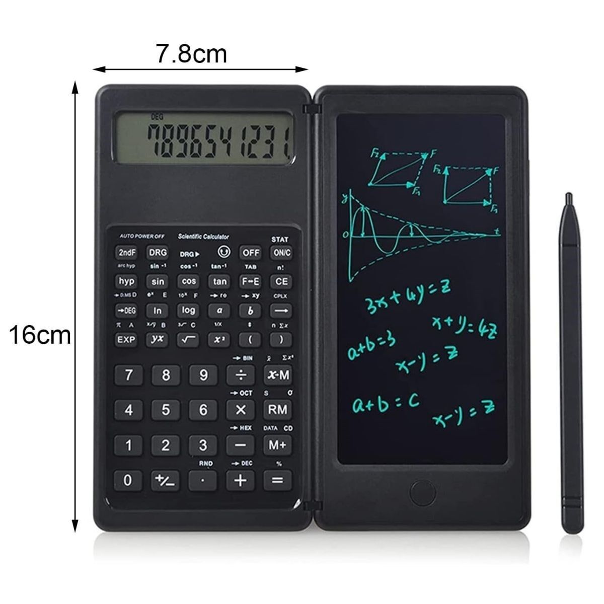 - 1 adet Silinebilir LCD Yazı Tabletli, Kalemli Katlanabilir Bilimsel Hesap Makinesi