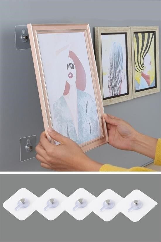 - Güçlü yapışkan bant, kancayı sağlam tutmak ve düşmesi kolay olmaması için ekstra güç sağlar