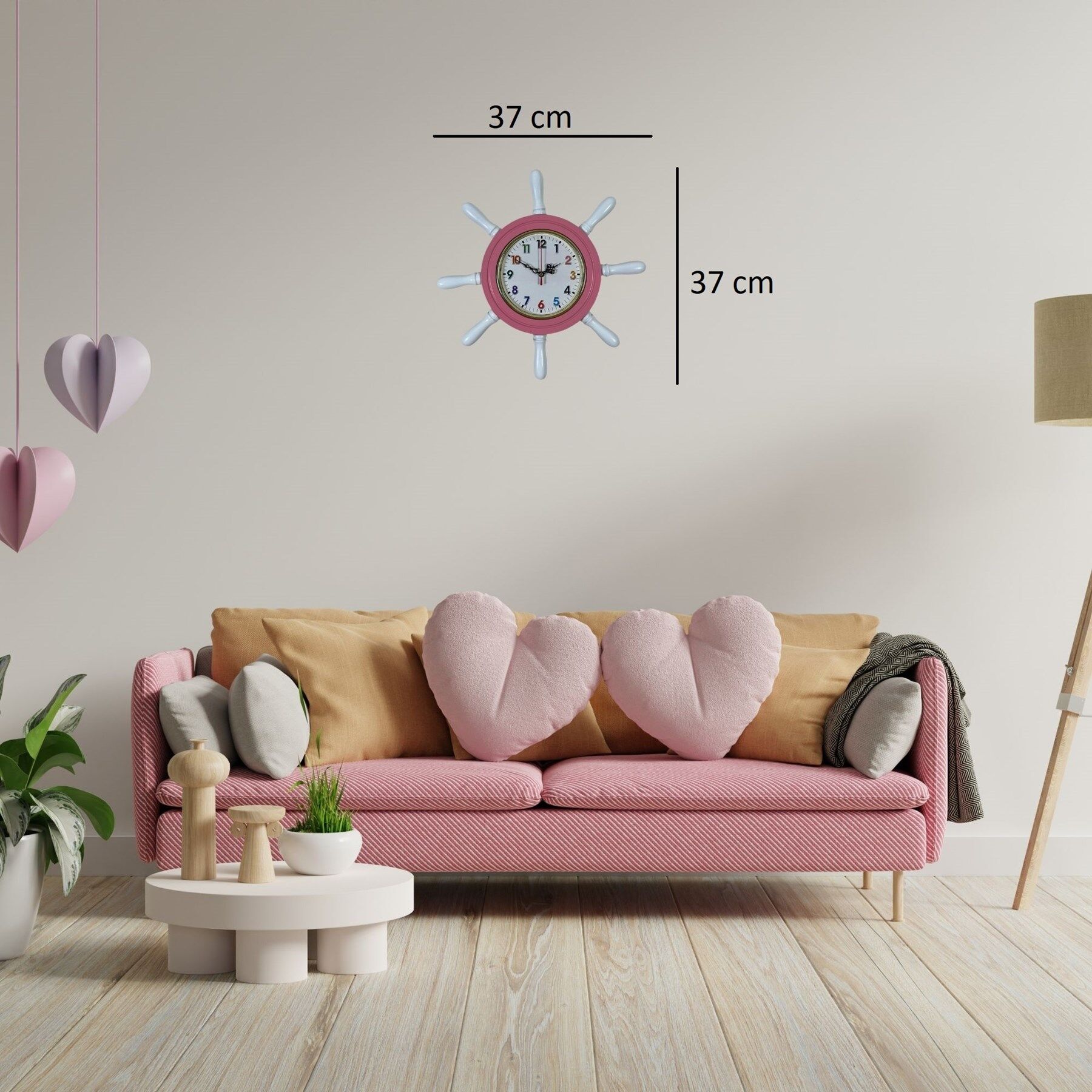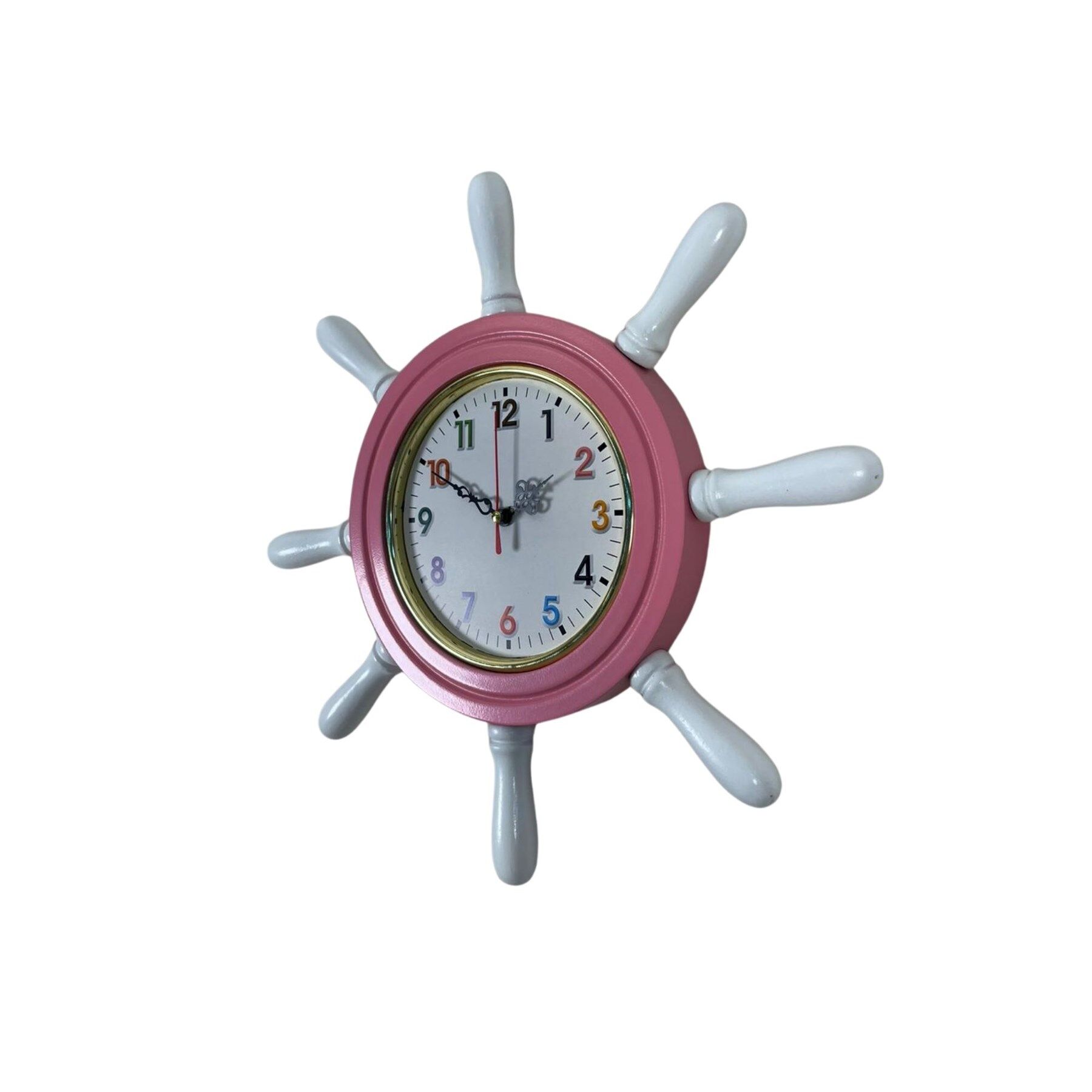Denizcilik temalı dekorasyonu sevenler için tasarlanan 37 cm Pembe Dümen Duvar Saati, yaşam alanlarına hem şık hem de eğlenceli bir dokunuş katar. Dümen formundaki özel tasarımı sayesinde özellikle çocuk odası, genç odası, yazlık evler ve deniz temalı dekorasyonlar için oldukça dikkat çekici bir dekoratif üründür.