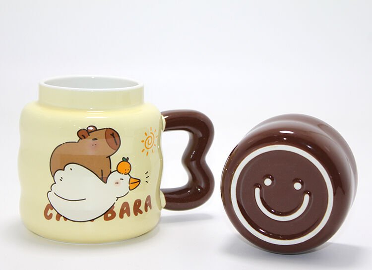 Capybara Tasarımlı Isı Muhafazalı Kapaklı Porselen Bardak