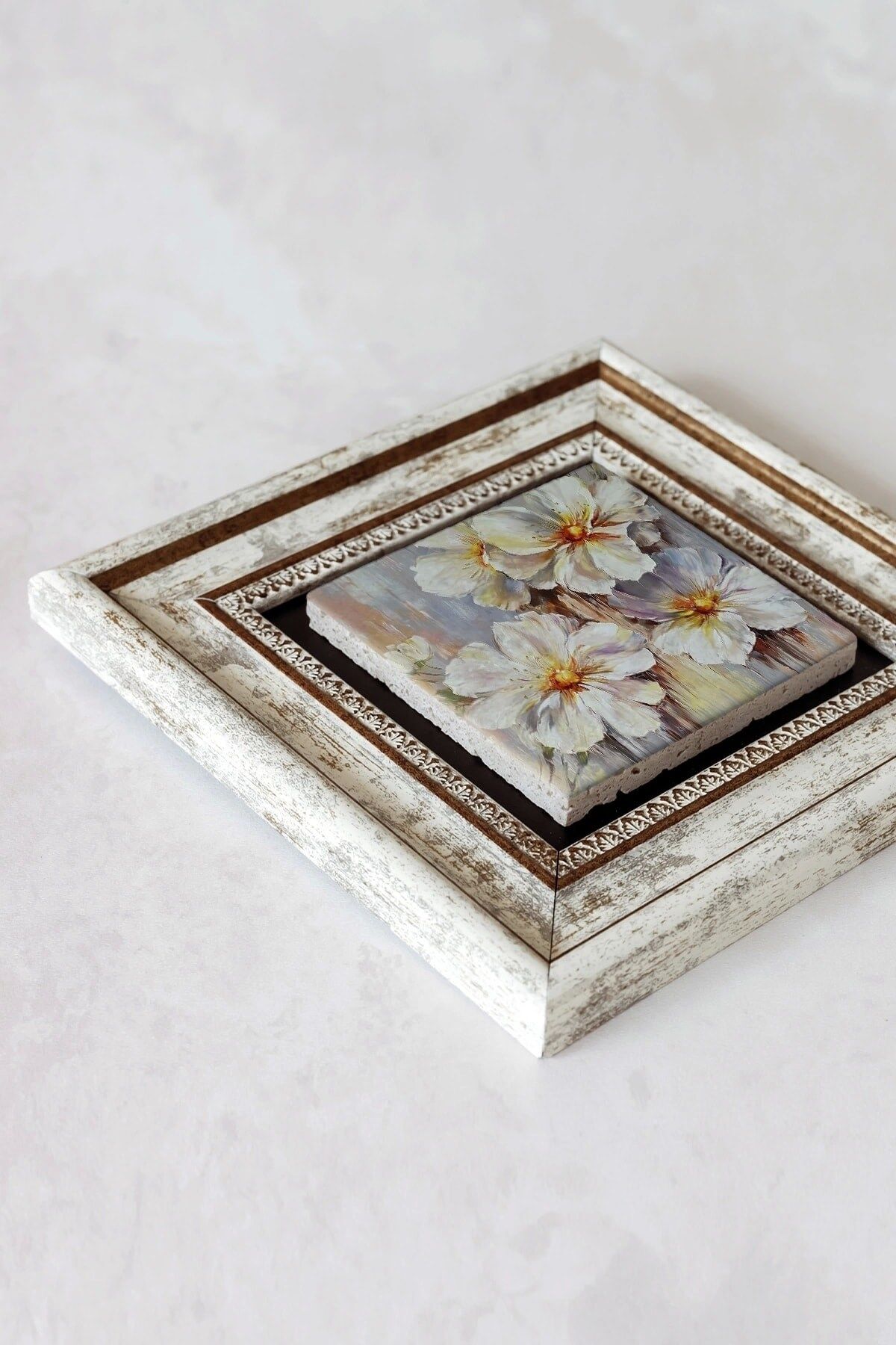 Çiçek Çerçeveli Taş Tablo , Çerçeveli Taş Duvar Dekoru-enkcrcvtbl-00204 20 cm