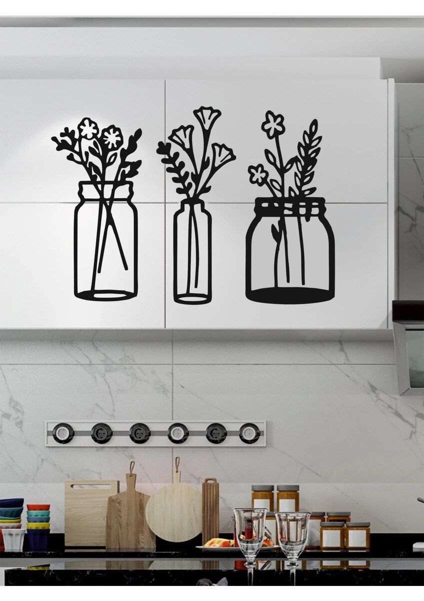 Çiçekli Kavanozlar, zarif çiçek figürleri ve kavanoz formu ile tasarlanmış, mutfaklara ferahlık ve sıcaklık katan 3’lü ahşap duvar dekoru setidir. Minimal çizgileri sayesinde modern ve bohem mutfak dekorasyonlarıyla mükemmel uyum sağlar.