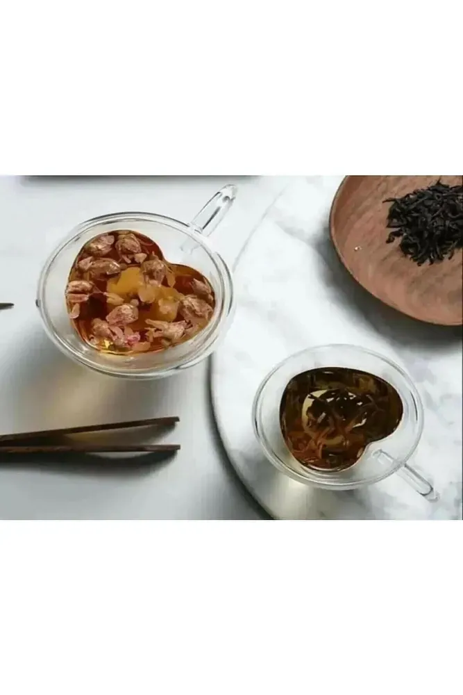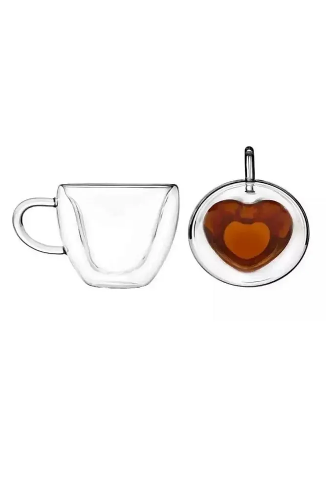 Çift Çidarlı Isı Yalıtımlı Kalpli Cam Kupa 150 ml