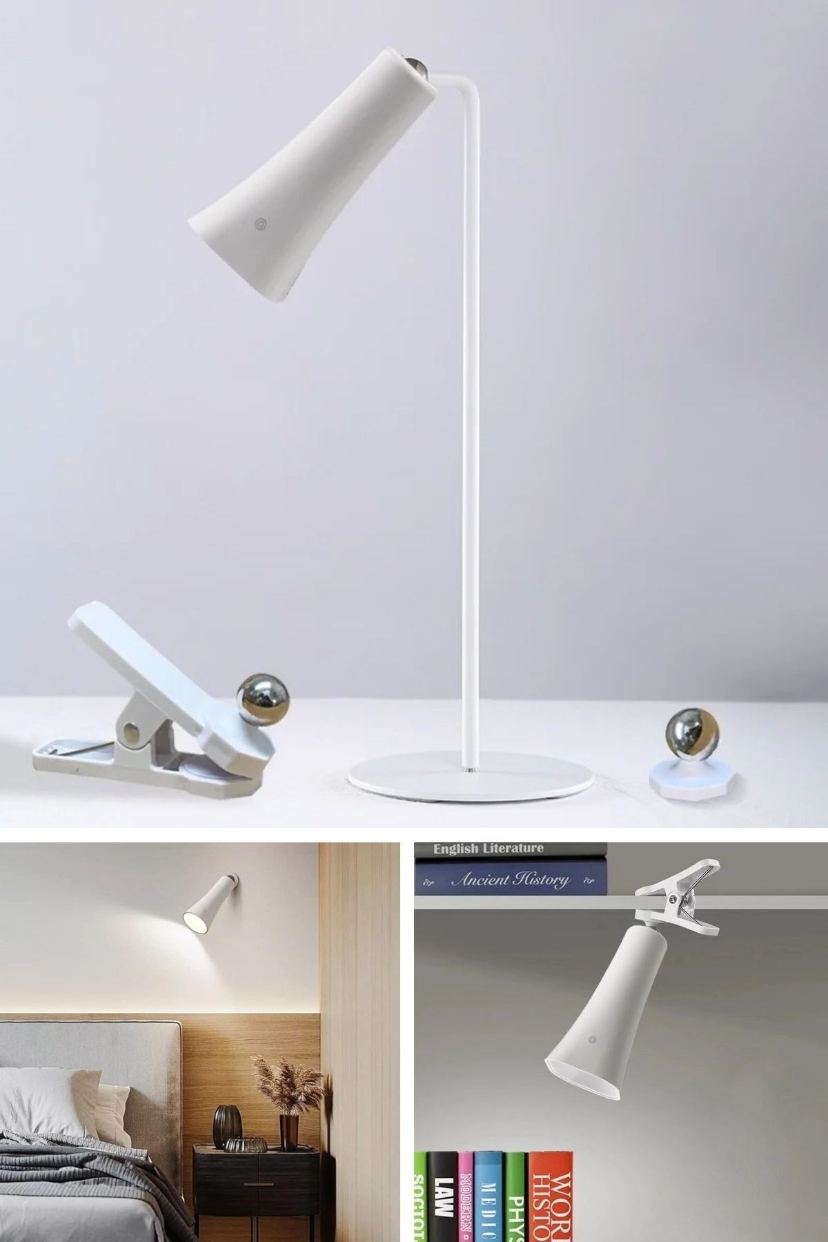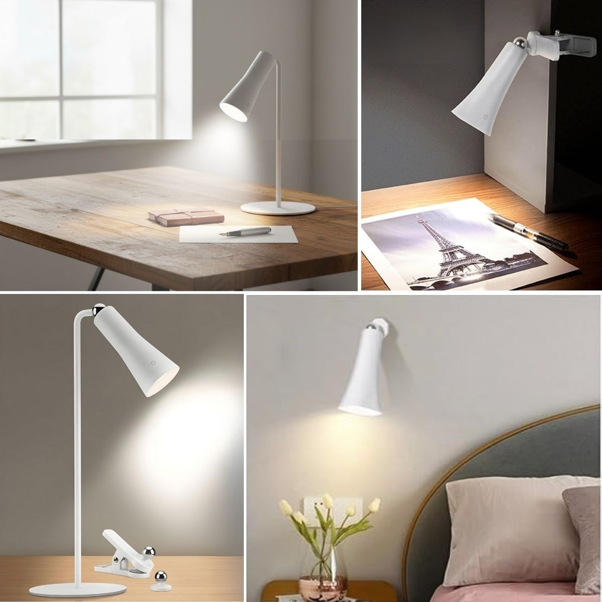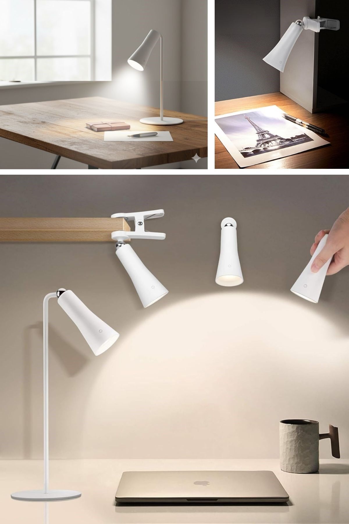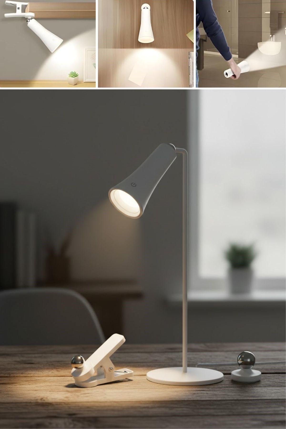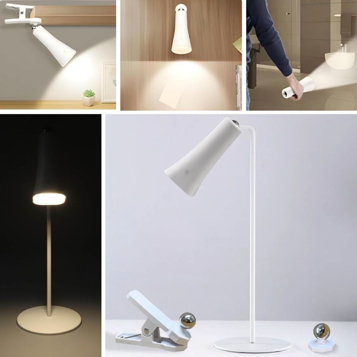 Çok Amaçlı Güçlü Manyetik Başlıklı 4’ü 1 Arada Portatif Beyaz LED Lamba Masaüstü, El Feneri, Duvara Asılabilir ve Mandallı Klipsli Işık