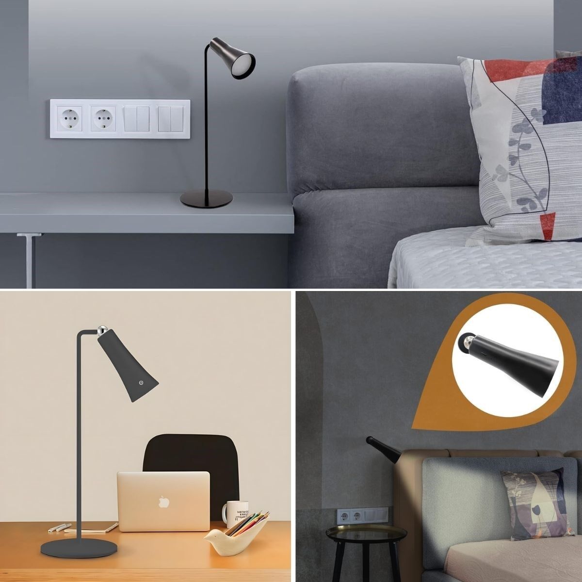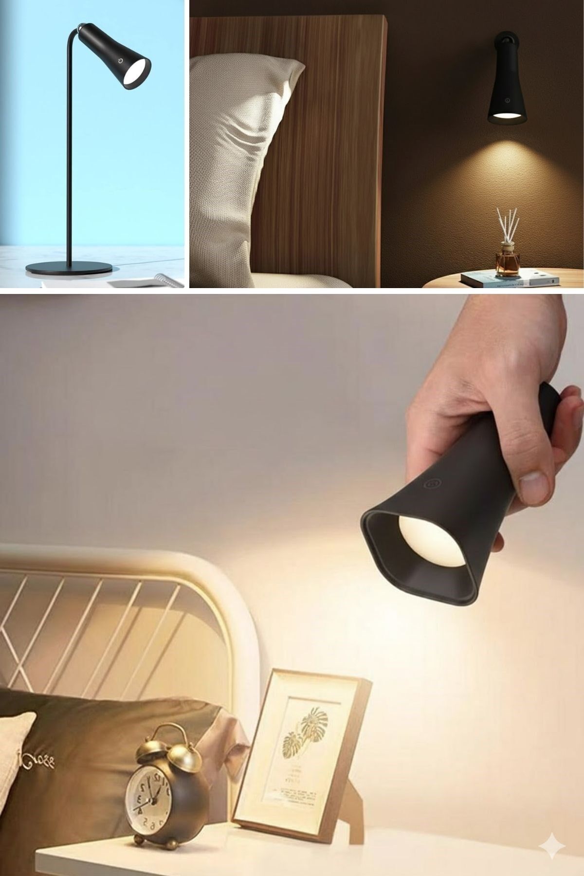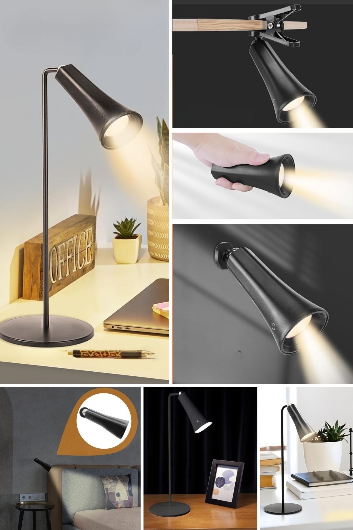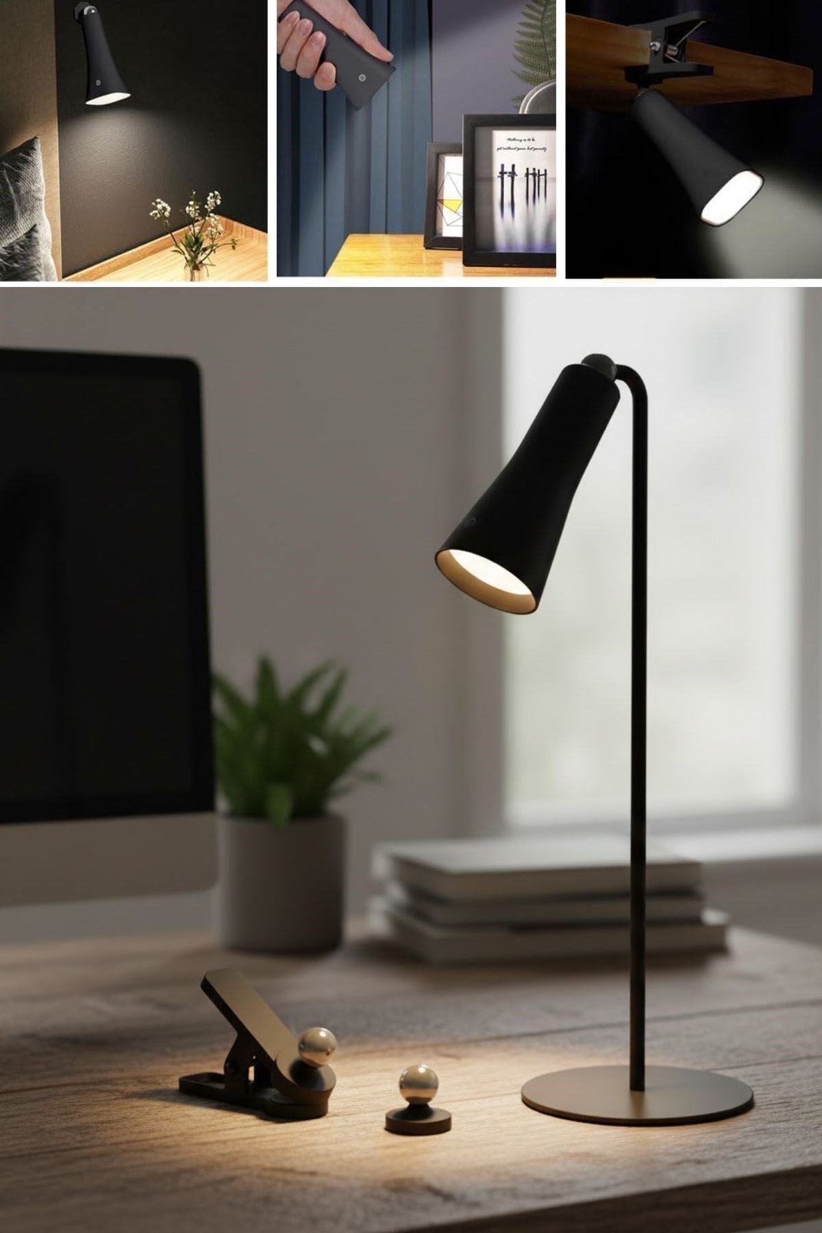 Çok Amaçlı Güçlü Manyetik Başlıklı 4’ü 1 Arada Portatif Siyah LED Lamba Masaüstü, El Feneri, Duvara Asılabilir ve Mandallı Klipsli Işık