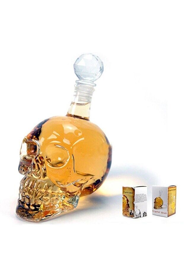 Crystal Head Kuru Kafa Cam Şişe Viski Likör Hediyelik Sürahi (550 ML)